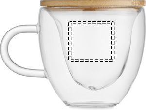 Mugg/kopp i värme och kyla tåligt borosilikatglas i hjärtform och lock i bambu. Volym: 180 ml.