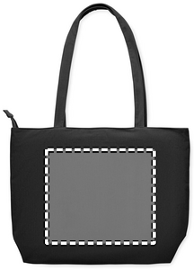 Stor shopping-/strandväska i polyestermanchester med dragkedja upptill, öppen framficka och innerficka. 220gr/m².