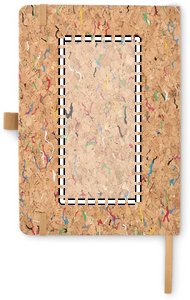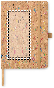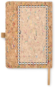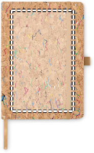 A5 anteckningsbok med hårt omslag av färgad kork. Inbunden. 192 linjerade papper (96 ark). Elastisk stängningsrem, bandbokmärke och elastisk pennhållare.