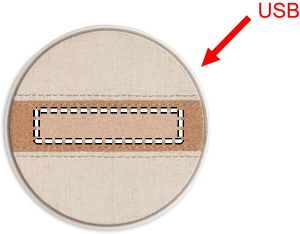 Trådlös laddare i återvunnen ABS med detaljer i bomull och kork. Anslut till din dator, placera din smartphone på den och låt den ladda. Uteffekt: DC 9V/1,67A (15W).
