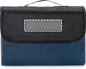 Vikbar RPET 150 gr/m² (68% återvunnen polyester/32% vanlig polyester) picknickfilt i polarfleece med vattenavvisande baksida i belagd PEVA. Frontflik med ficka med dragkedja och handtag.