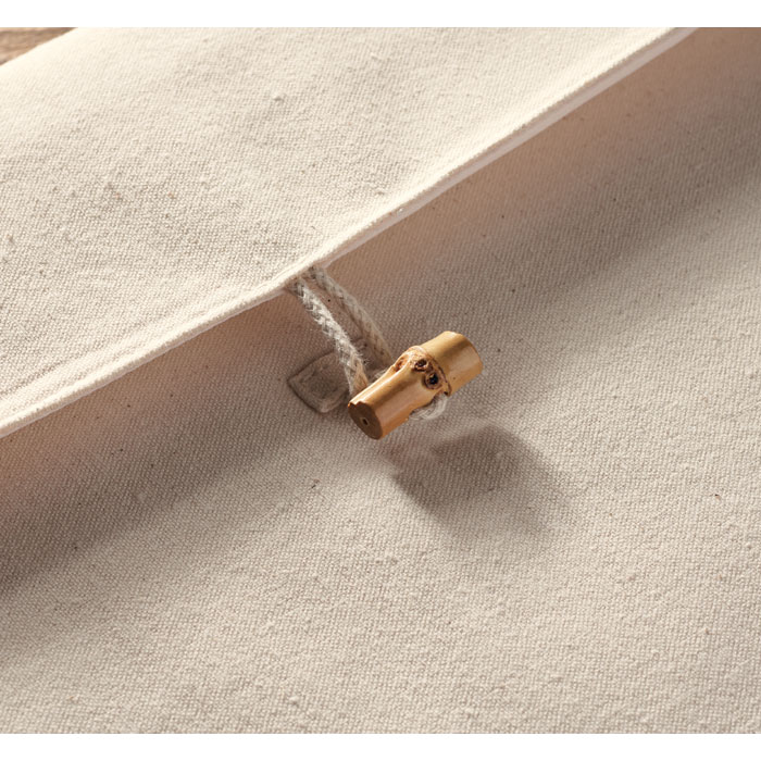Vadderad 15-tumsväska för laptop i 220 gr/m² bomull. Innerfoder 120 gr/m². Stängning med bambuknapp.