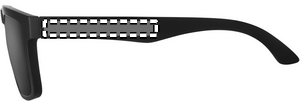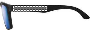 Festivalsolglasögon med spegelblanka glas och matt gummerad båge. UV400-skydd.
