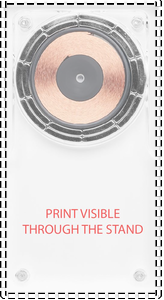 Trådlös laddare (15W) i akryl med telefonställ. När den är ansluten till en strömkälla laddar den din mobila enhet trådlöst. Utgångseffekt: 9V/1,67A (15W) för snabbladdning.