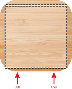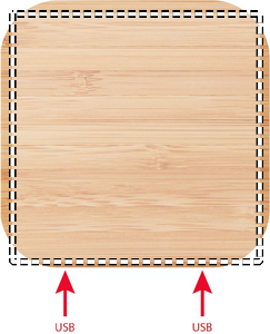 Trådlös laddplatta i bambumed 2 st USB utgångar. Effekt DC5V/1A (5W). Eftersom bambu är ett naturligt material kan vissa färgskiftningar förekomma.