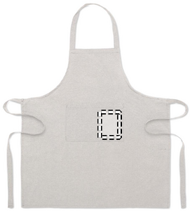 Justerbart köksförkläde med 1 framficka i 220 gr/m² återvunnen bomull. (80 % återvunnen bomull, 20 % vanlig bomull)