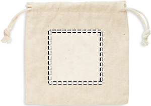 8 färgade stapelbara klossar i trä med en påse med dragsko av bomull.