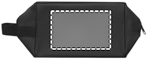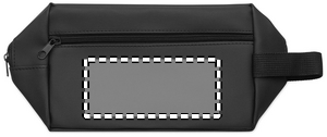 Necessär av 600D RPET-polyester med PU-beläggning och 210D RPET-foder. Frontficka med dragkedja och handtag.