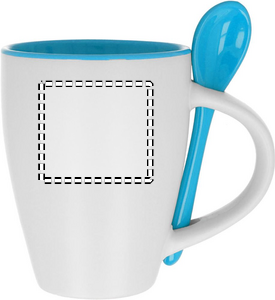 Tvåfärgad keramik kaffemugg med matchande färgad sked. 250 ml.