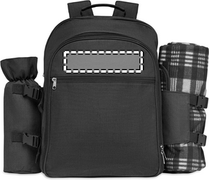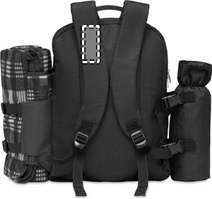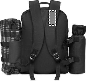 Picknickryggsäck i 300D RPET polyester för 4 personer med kylfack med högkvalitativa bestick, 1 servitörs korkskruv, skärbräda, brödkniv och picknickfilt. Väska i kationiskt 2-färgad polyester.