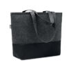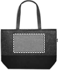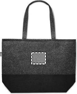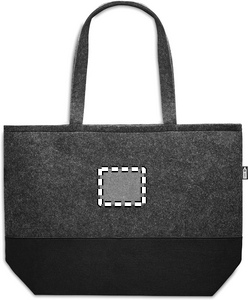 RPET väska av filt med långa handtag och färgad botten. De kontrasterande färgerna på botten och toppen av den här tygkassen gör att den är uppseendeväckande och snyggare än andra. Fungerar bra för alla vardagliga ärenden men med extra stil. Bär väskan över axlarna för att hålla händerna fria. Den här väskan är tillverkad av återvunnen PET-plast.