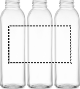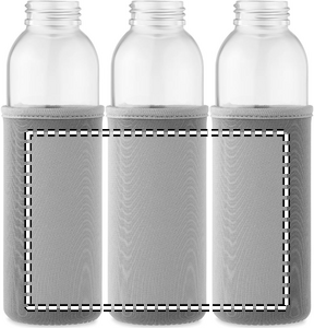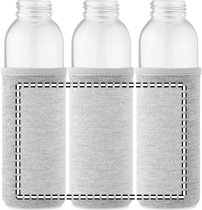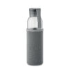 Glasflaska i återvunnet glas med neoprenpåse och PP-lock med silikonhängare. Läcker inte. Volym: 500ml.