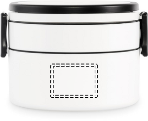 Tvådelad rund lunchlåda av PP med clipsstängning på sidan och handtag. Inklusive innerlock. Volym 250 ml upptill, 700 ml nedtill.