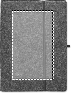 A4-konferensmapp i RPET-filt. Anteckningsblock med 100st linjerade blad. Elastisk pennhållare. Den har flera fack.