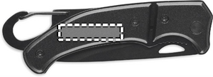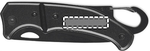 Fällkniv i aluminium med karbinhake. Blad i rostfritt stål.