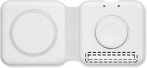 2 i 1 hopfällbar laddningsstation i ABS. Den innehåller en trådlös laddare på 15 W och en laddare för smartklockor (endast Apple®).
