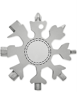 Multiverktyg utformad som snöflinga i rostfritt stål med 17-i-1 funktion och metallring. Det här multiverktyget är perfekt för gör-det-själv-projekt och amatörhandlaren. Använd ringen för att fästa den på ditt verktygsbälte eller andra verktyg.