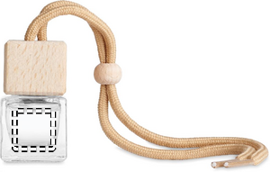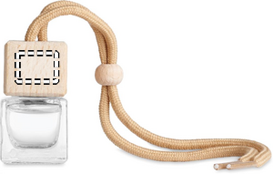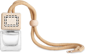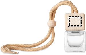 Påfyllningsbar bildoft/luftfräschare med välluktande olja av nybilsdoft. Glasbehållare med boklock. Volym 5 ml.