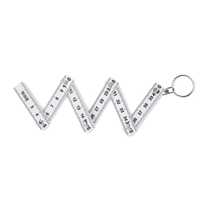 Nyckelring med tumstock för snickare i ABS. Längd: 50 cm.