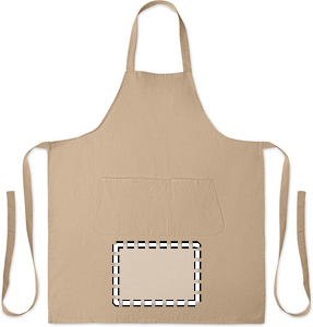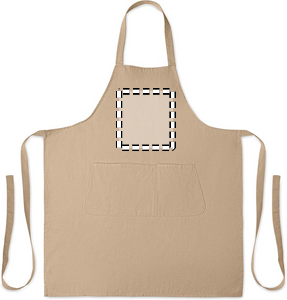 Justerbart förkläde med 1 stor framficka med 2 fack i 240 gr/m² ekologisk bomull. Med justerbar knapp på halsremmen.