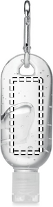 Handrengöringsgel i återfyllningsbar PET- flaska med vipplock och karbinhake. Icke-alkoholformulering. Kapacitet 30 ml.