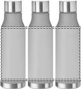 Flaska i RPET med gummierad yta och lock av rostfritt stål med inre RPET-lock och silikonring. Fri från BPA. Läckagefritt . Kapacitet: 600 ml. Ej anpassad för drycker med kolsyraLäckagefritt.