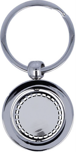 Nyckelring av metall med världen dekorerad på insidan. Styckepackad presentförpackning.