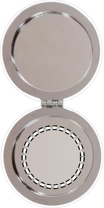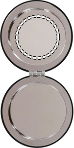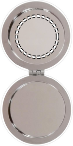 Fickspegel i rund form med PU omslag. Dubbla speglar invändigt och magnetförslutning.