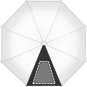 23 tums rakt paraply i POE med PG-piping och 1 panel i polyester för tryckyta. Manuell öppning. Glasfiber, ribbor och ram. Förkromat skaft med plastspetsar. Handtag i gummi.