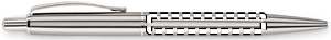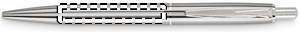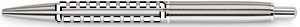 Kulspetspenna med tryckknapp i återvunnet rostfritt stål. Presenteras i matchande korkbox. Blått bläck.