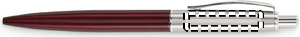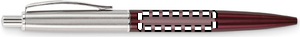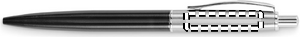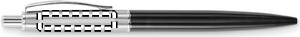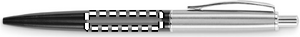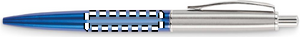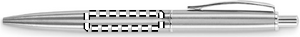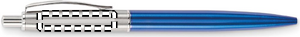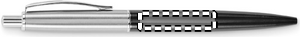 Kulspetspenna med tryckknapp och skaft i återvunnet rostfritt stål. Blått bläck. Levereras i svart låda.