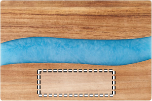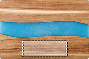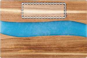 Skärbräda i akacieträ med detalj i epoxidetaljer.