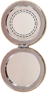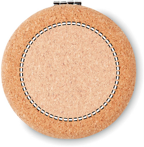 Rundad dubbelsidig kompakt smink spegel med korkutsida.