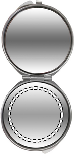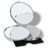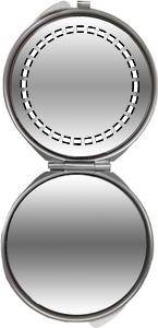 Make-up- & sminkspegel med metallic utsida. En vanlig och en spegel med förstoring. Levereras i ett fint sammetsfodral.
