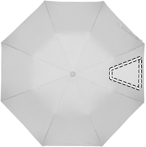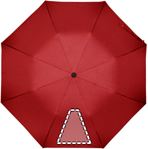 Sektionsparaply 21 tum i exklusivt 190T pongee material med pläterat stålskaft, spröt och spets. Svart gummerat handtag i ABS. Viks ihop i två sektioner. Manuell stängning och automatisk öppning. Inkluderar matchande påse.