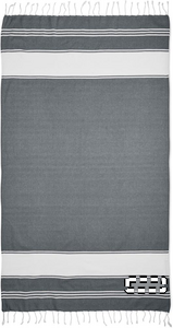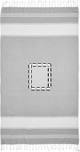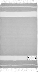 Hamamset av strandhandduk och gymnastikpåse. 70% återvunnen bomull och 30% återvunnen polyester 180 gr/m². Mått: 90x160 cm.