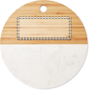 Serveringsbräda gjord av marmor och bambu. Denna runda serveringsbräda eller ostfat har ett lyxigt och hög kvalitetskänsla tack vare den vita marmorn. Bambudelen ger den ett mer naturligt utseende. Bambu är en naturlig produkt, det kan finnas små variationer i färg och storlek per artikel, vilket kan påverka det slutliga märkresultatet.