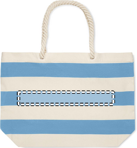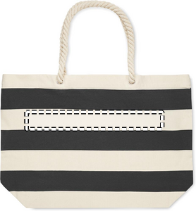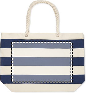 Randig strand- eller shoppingväska i bomull med snörhandtag. 220 gr/m².