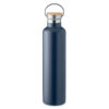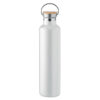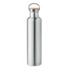 Dubbelväggig isolerande vakuumflaska i rostfritt stål med bambulock och bärhandtag. Kapacitet: 1 liter. Håll dina drycker kalla eller varma med den här isolerade flaskan. Ta med dig ditt favoritkaffe, te eller varm choklad genom att bära flaskan i handtaget. Bambuslocket ger den här flaskan i rostfritt stål en trevlig, naturlig touch.