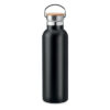 Dubbelväggig isolerande vakuumflaska i rostfritt stål med bambulock och bärhandtag. Kapacitet 750 ml. Håll dina drycker kalla eller varma med den här isolerade flaskan. Ta med dig ditt favoritkaffe, te eller varm choklad genom att bära flaskan i handtaget. Läcker inte ut. Bambuslocket ger den här kolven i rostfritt stål en fin, naturlig touch.