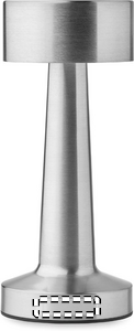Bordslampa i metall med 12 LED-lampor, steglös dimning, 3 ljuslägen och touchkontroll. USB-port och uppladdningsbart Li-Ion 1200 mAh batteri. 6 timmars arbetstid efter full laddning. Inklusive laddningskabel.