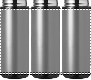 2-delat set med 600ml dubbelväggig flaska i återvunnet rostfritt stål med PP-lock, metalldetalj och silikonhandtag, plus 21'' hopfällbart, stormsäkert paraply i pongee i presentförpackning.