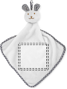 Plysch baby filt i skuren polyester med kanin design. 180gr/m².