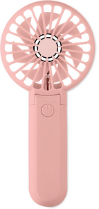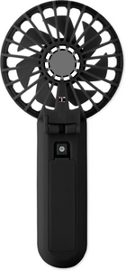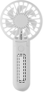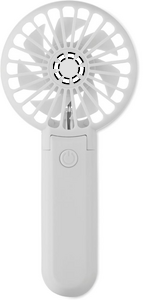 Bärbar, hopfällbar fläkt i ABS med 3 hastighetsinställningar. Kan användas som handhållen fläkt eller bordsfläkt. Inklusive 1 utbytbart och uppladdningsbart 14500 litiumbatteri på 500 mAh.