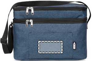 2-färgad kylväska i 600D RPET och PEVA fodrad. 2 fack, en frontficka och justerbar axelband.
