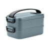 Tvådelad lunchlåda i PP med löstagbar skiljevägg och sidospännen samt lufttätt lock. Kapacitet: 800 ml (2x).