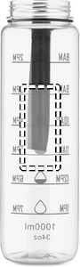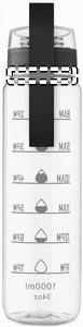 Sportvattenflaska i RPET med tidsmarkeringar, flip lock som kan öppnas med en hand, säkerhetslås och bärrem. Läckagefri. Volym: 1L.