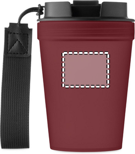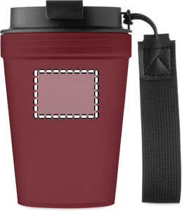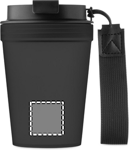 Enkelväggig take-away mugg i PP, med band i RPET-polyester. Läckagefri. Volym: 300 ml. Eftersom det här är en enkelväggig mugg kan värmeöverföring fortfarande förekomma.