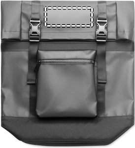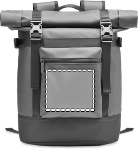 Rullsäck i 50C-tarpaulin med vadderad rygg, botten och förstärkta axelremmar. Fickor med dragkedja på framsidan.