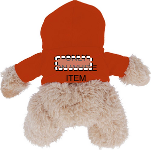 Teddybjörn i plysch. Klädd i en tryckbar huvtröja. Sublimeringstryck endast på vit produkt.